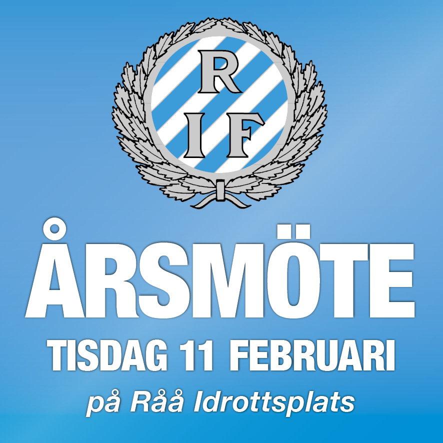 Råå IF kallar härmed sina medlemmar till årsmöte tisdagen den 11 februari kl. 19.00.
