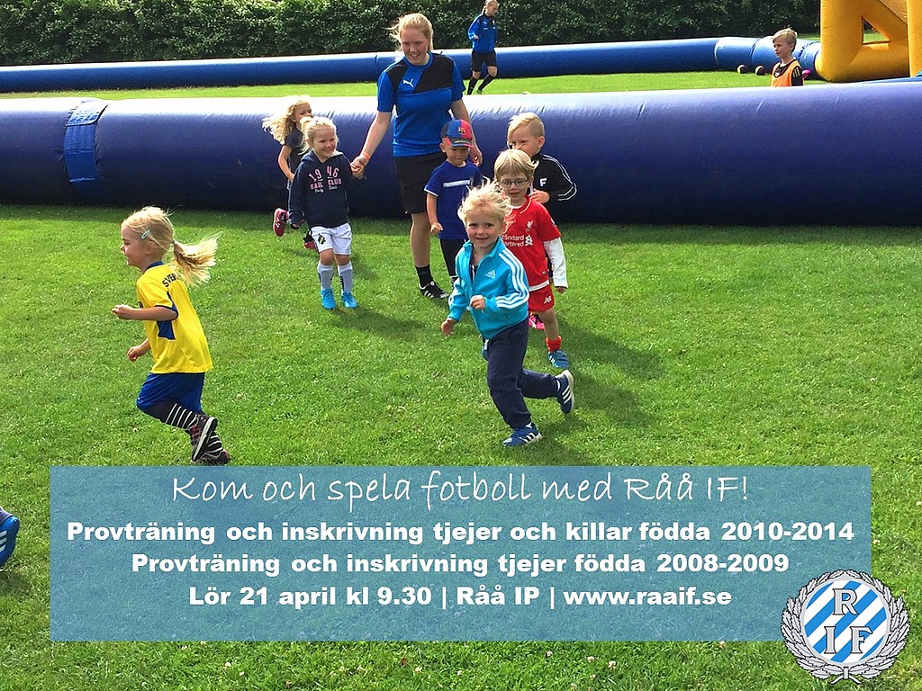 Kom till Råå Idrottsplats denna lördag och få tillfälle att prata med ledare och ansvariga i klubben. Varje lördag under fotbollssäsongen tränar därefter alla våra knattar fotboll blandat med lek. Både för föräldrar och barn blir det ett enkelt sätt att umgås och ett trevligt sätt att börja helgen. Kiosken är öppen för allas trivsel.