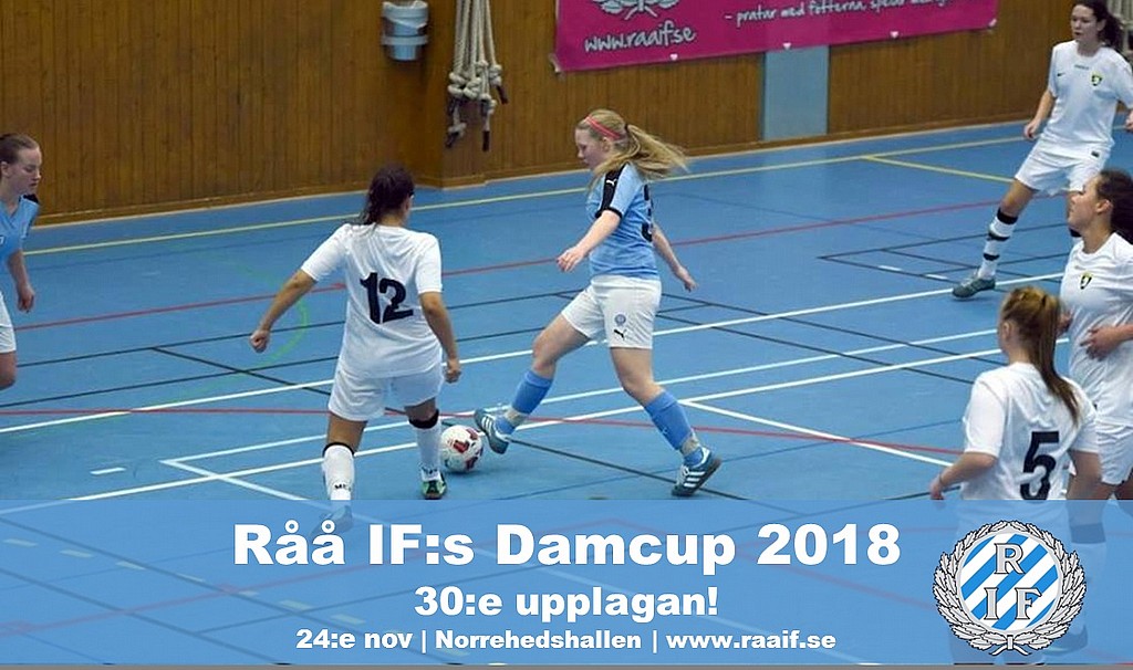 Nu är det snart dags för 30-årsjubilerande Råå IF:s Damcup. Turneringen spelas lördagen den 24 November 2018 i Norrehedshallen, Helsingborg.