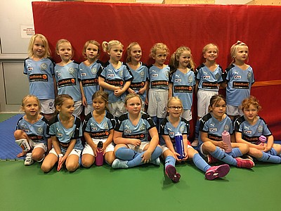 IF:s och Eskilsminne IF:s tjejer 5-6 år som till publikens jubel spelade tre rafflande