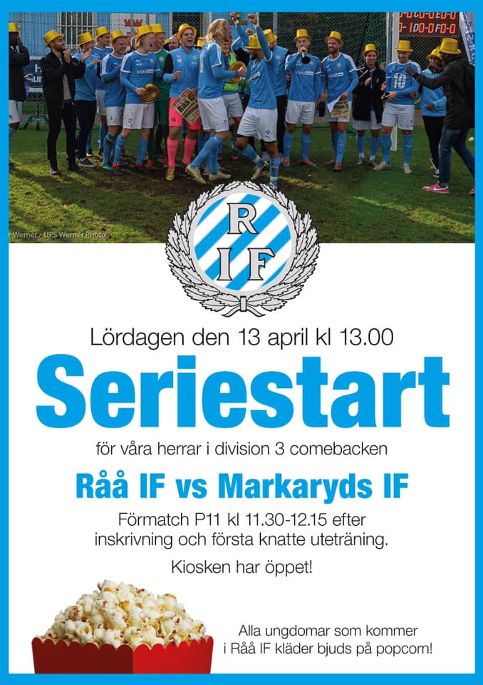 kl. 13.00 premiär för herrar division 3 när Råå IF tar emot Markaryds IF