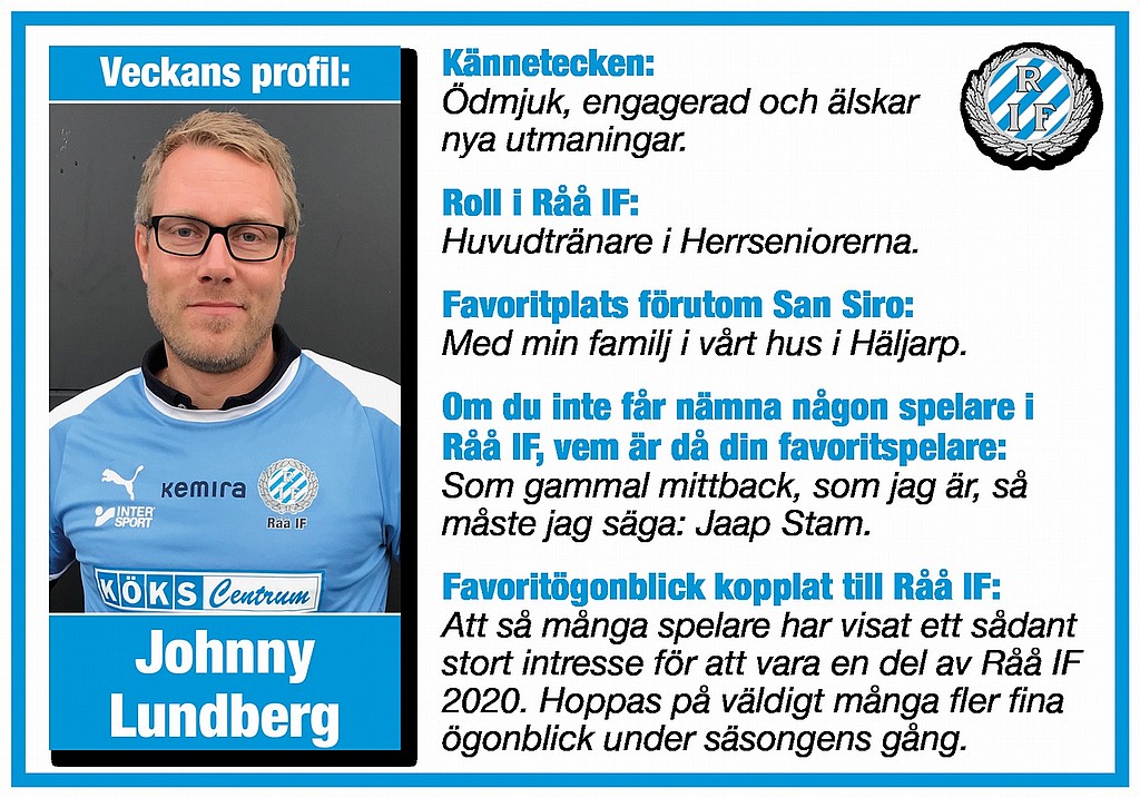 Hohoho, nu går vi i raskt takt mot fjärde advent och då passar vi på att presentera en efterlängtad nykomling i Råå IF, nämligen vår nye herrtränare Johnny Lundberg. Johnny har ett digert CV och vi ser oerhört mycket framemot att följa vad han kan åstadkomma med truppen 2020. Vi önskar Johnny och alla er andra en riktigt fin helg!
