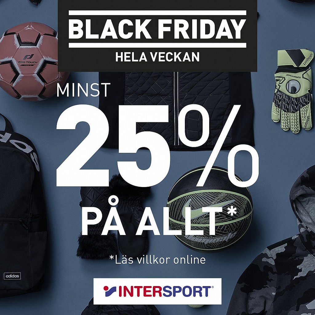 Intersport Black Friday och ger minst 25% på allt* + massa grymma