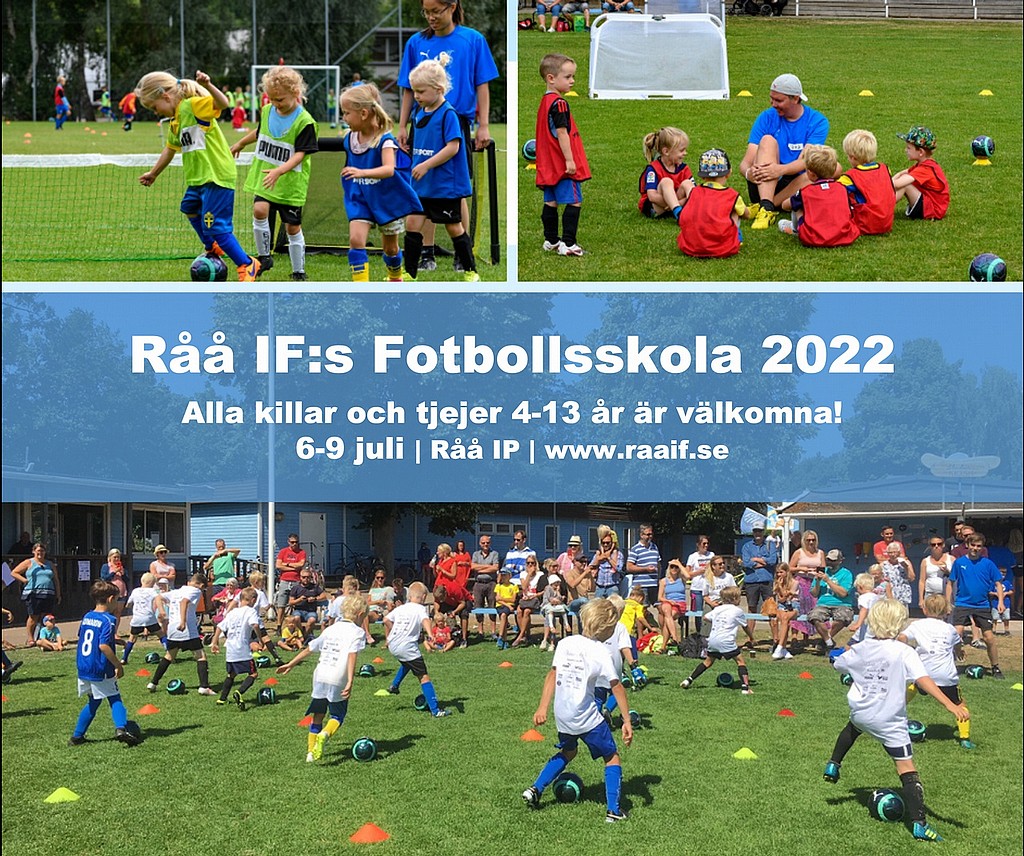 Nu bjuder vi in till Råå IF:s 34:e upplaga av vår populära fotbollsskola. Vi kommer att bjuda på fyra härliga dagar med fotbollsträning, överraskningar och roliga lekar med nya och gamla kompisar. Alla tjejer och killar i åldern 4-13 år är välkomna! Du kan vara med oavsett om du spelar i Råå IF eller i en annan klubb. Du behöver inte ha spelat fotboll tidigare. Kom och ha kul med oss!